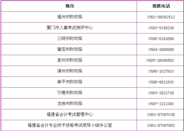 福建省2013年初級會計職稱考試筆試考試值班電話