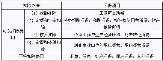 2.費(fèi)用扣除的方法 :