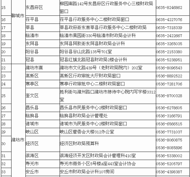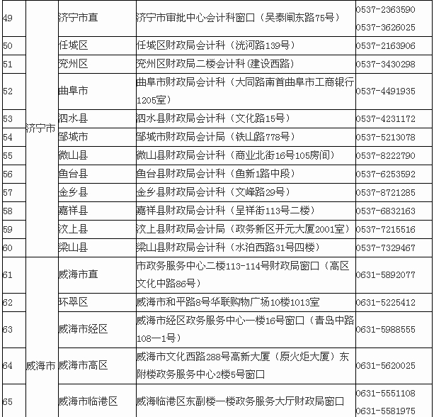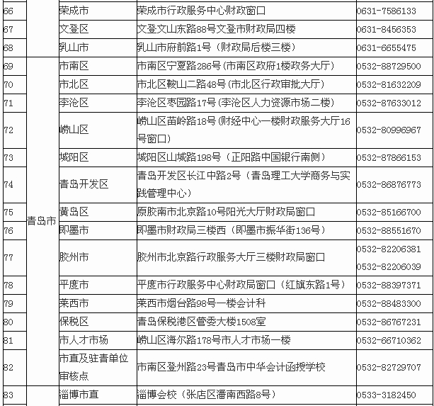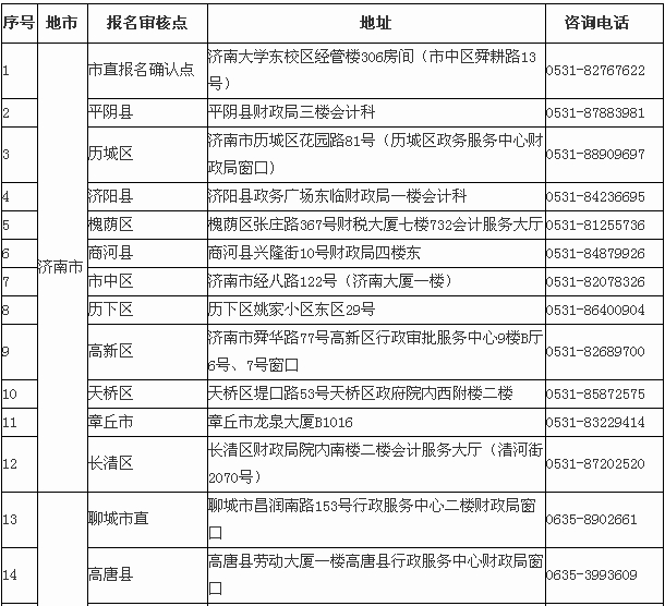 山東考區2014年度全國會計專業技術資格考試報名現場審核點(初、中級)