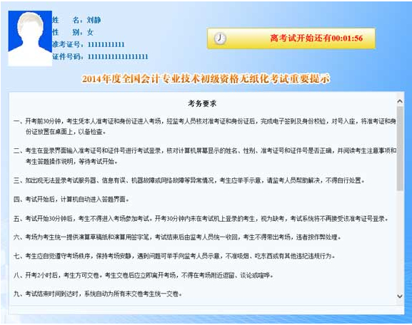 2014全國初級會計專業(yè)技術資格無紙化考試考場規(guī)則