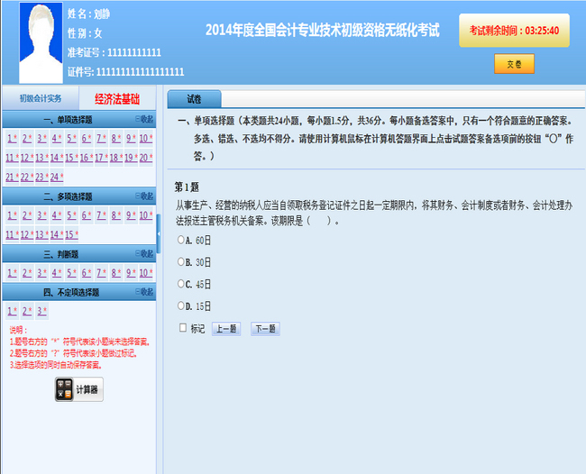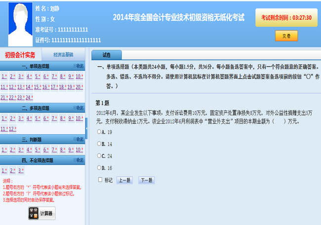 全國會計資格評價網:2014初級會計職稱機考操作指南