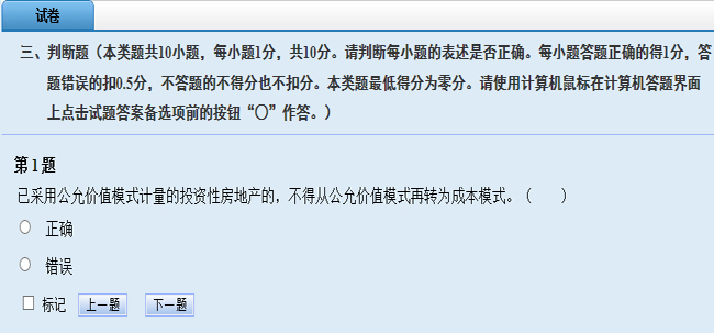 (1)本類題共X小題,每小題X分,共X分。請判斷每小題的表述是否正確。每小題答題正確的得X分,答題錯誤的扣X分,不答題的不得分也不扣分。本類題最低得分為零分。請使用計算機鼠標在計算機答題界面上點擊試題答案備選項前的按鈕“○”作答。