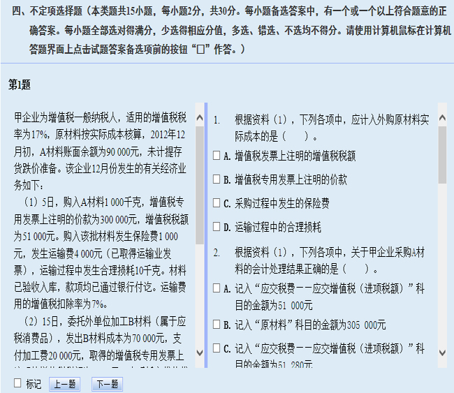 (1)本類題共X小題,每小題X分,共X分。每小題備選答案中,有一個或一個以上符合題意的正確答案。每小題全部選對得滿分,少選得相應分值,多選、錯選、不選均不得分。請使用計算機鼠標在計算機答題界面上點擊試題答案備選項前的按鈕“□”作答。