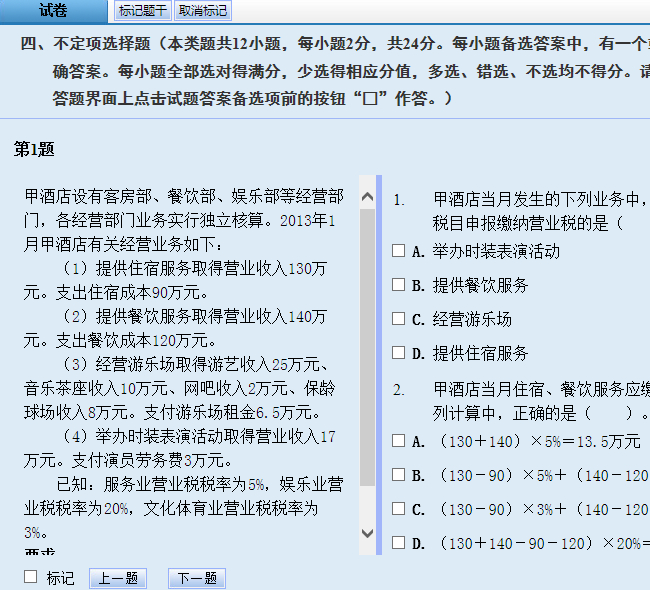 (2)答題時,考生直接用鼠標點擊備選項中認為正確的所有選項。如果需要撤銷已經選中的選項,再次點擊該選項前的按鈕即可。