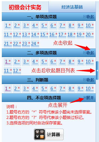 2.題目類型分為單項選擇題、多項選擇題、判斷題、不定項選擇題。紅色字體為說明部分:題號右方的“*”號表示該小題還未作答,“?”號表示該小題做過標記。