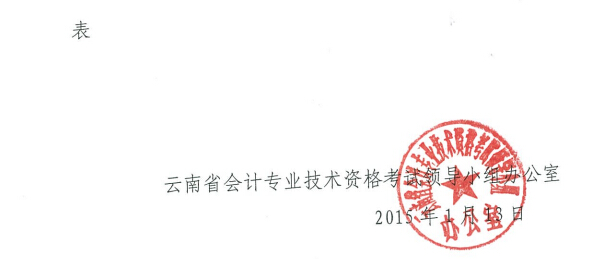 云南省2015年初級會計職稱考試考務日程安排的通知