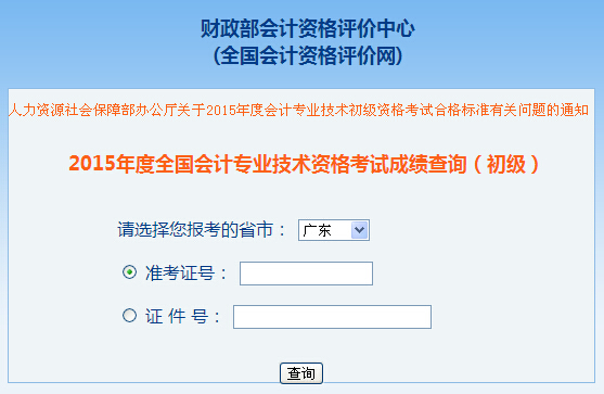 廣東2015年初級會計職稱成績查詢入口