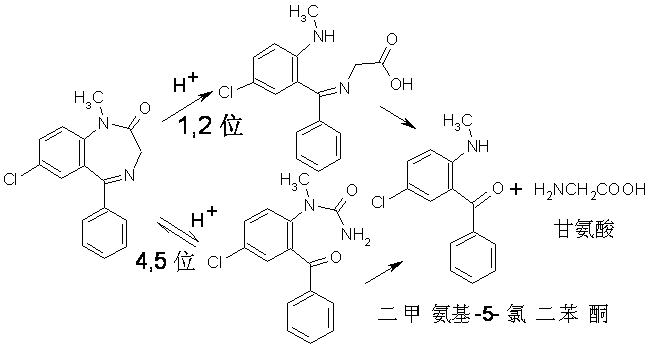 化學(xué)名為 1-甲基-5-苯基-7-氯-1,3-二氫-2H-1,4-苯并二氮雜卓-2-酮。又名安定。