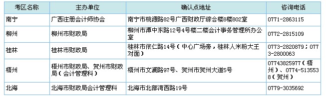 廣西省2013年注冊會計師資格審核確認點地址及電話
