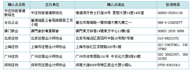 港澳臺外2013年注冊會計師資格審核確認點地址及電話