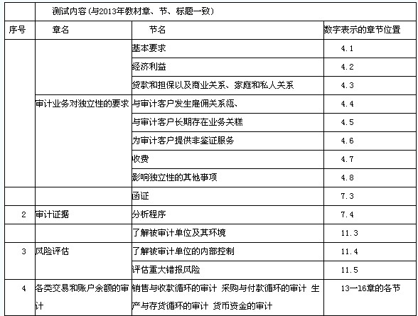 與2012年相比,2013年《審計》考試大綱(專業階段)僅在“參考法規”部分增加了“5.《企業內部控制審計指引》(財會[2010]11號)”,除此之外的測試目標、測試內容與能力等級、其他參考法規等內容基本未變。