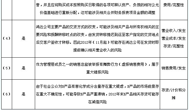 (2)根據以往年度審計結果,鴻達公司針對主要業務流程(包括銷售與收款、采購與付款以及生產與存貨)的內部控制是有效的,因此在2012年度審計中將繼續采用綜合性審計方案。