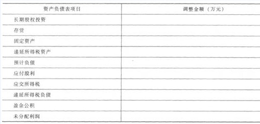 (3)填列甲公司2010年12月31日資產負債表相關項目凋整表中各項目的調整金額(調增數以“+”表示,調減數以“一”表示,不需要調整的項目填“0”)。