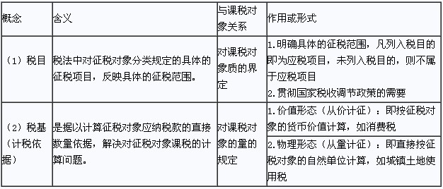 (1)稅目:是在稅法中對(duì)征稅對(duì)象分類規(guī)定的具體的征稅項(xiàng)目,反映具體的征稅范圍,是對(duì)課稅對(duì)象質(zhì)的界定。