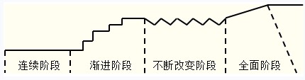 漸進階段:發生緩慢的變化。這種變化可能是零打碎敲性的,也可能是系統性的。