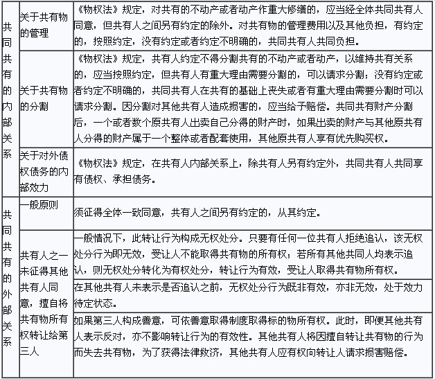 (1)共有人的權(quán)利義務(wù)。共有人按照約定管理共有的不動(dòng)產(chǎn)或者動(dòng)產(chǎn);沒有約定或者約定不明確的,各共有人都有管理的權(quán)利和義務(wù)。