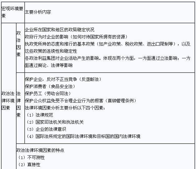 PEST模型:政治和法律環境因素、經濟環境因素、社會和文化環境因素、技術環境因素。