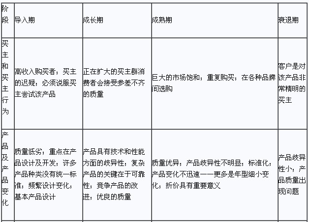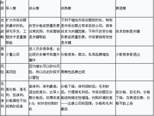 產品生命周期四個階段的名稱:導入期、成長期、成熟期和衰退期。這些階段是以產業銷售額增長率曲線的拐點劃分。