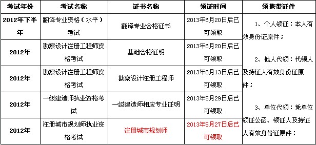 2012年舟山城市規(guī)劃師考試證書領(lǐng)取通知