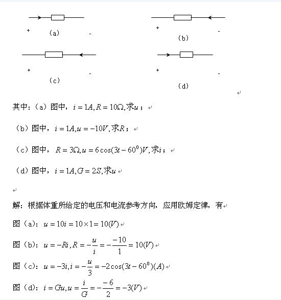 例1-1求圖中所示個(gè)電路中的未知量u,R或i