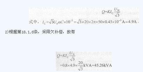 (2)發電機額定電壓為20kV,中性點采用消弧線圈接地,20kV系統每相對地電容為0.45μF.消弧線圈的補償容量應選擇下列哪項數值?(過補償系數K取1.35,欠補償系數K取0.8)