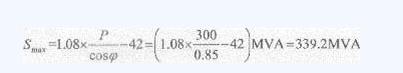 (4)發電機額定功率因數為0.85,最大連續輸出容量為額定容量的1.08倍,高壓工作變壓器的計算容量按選擇高壓工作變壓器容量的方法計算出的負荷為46MVA,按估算廠用電率的原則和方法所確定的廠用電計算負荷為42MVA,試計算并選擇主變壓器容量最小是下列哪項數值?