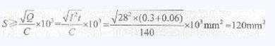 (2)已知環境溫度40℃,電纜熱穩定系數C=140O試計算該變壓器回路6kv交聯聚乙烯銅芯電纜的最小截面為()。