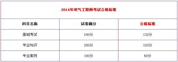2014年電氣工程師考試合格標準即: