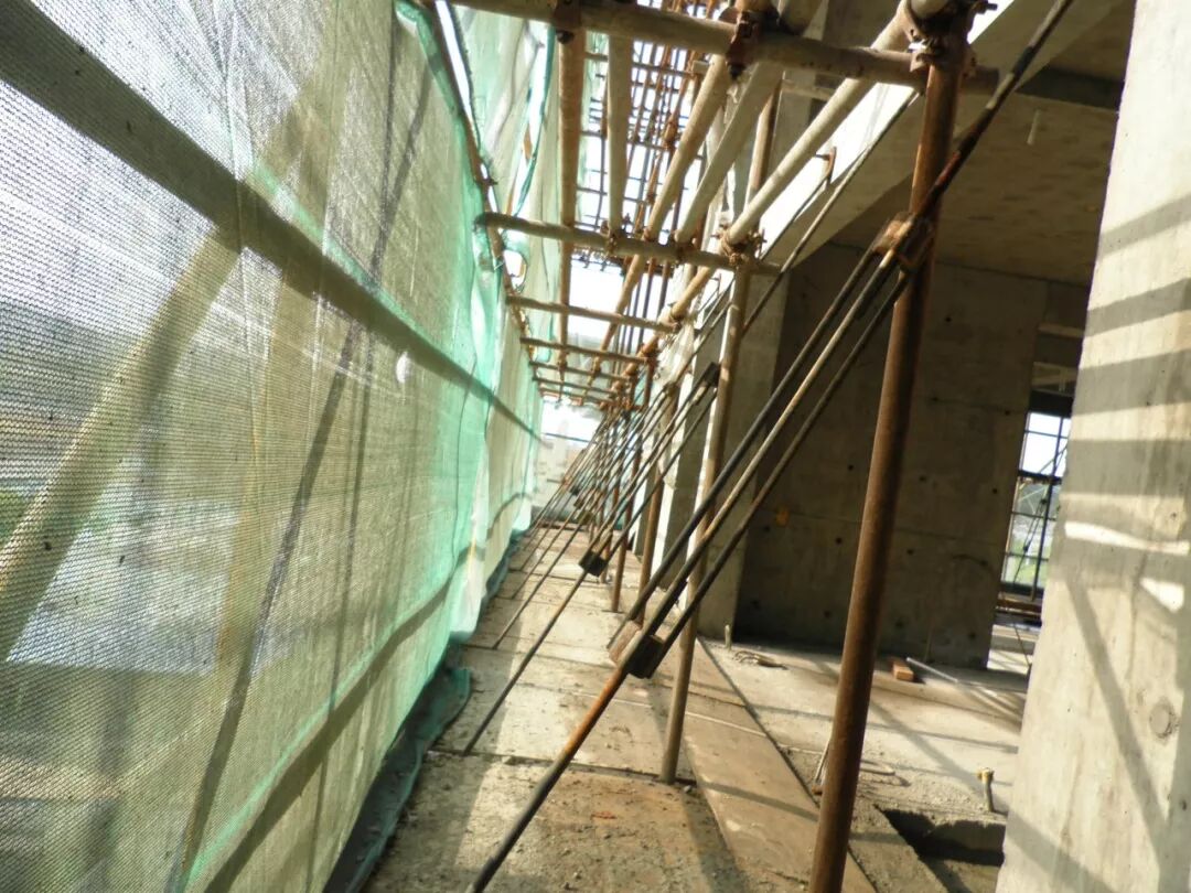 8.12懸挑腳手架底部與墻體間的間隙用竹夾板封堵嚴密,預防物體從中墜落。