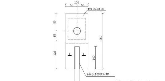 3、下端Φ20*1.0米碳素優質鋼與250*10*12㎜鐵板(根據樓層面而定),打孔切割槽距(槽距為20*100)后進行坡口焊接,見圖5.3.2-8。