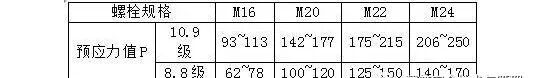 (5)擰緊高強螺栓抽查5%,8.8級Φ20螺栓預應力值達120KN,不合格數不得大于抽查數10%。