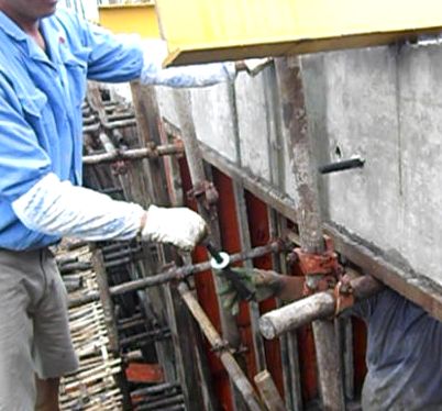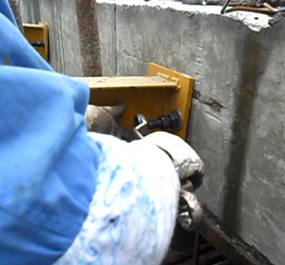 5.6.1待混凝土的強達到要求后,拆除梁的側模,疏通預埋梁內套管,將20*300㎜高強螺栓加墊片從套管孔中由內往外穿過,見圖5.6.1。