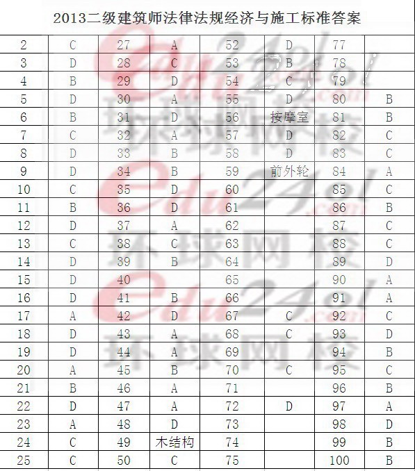 2013年二級(jí)注冊(cè)建筑師法律法規(guī)經(jīng)濟(jì)與施工考試真題