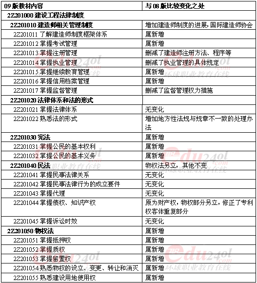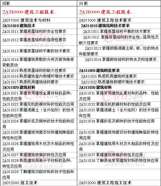 2009年二級建造師大綱新舊對比匯總(上)電子書下載.rar
