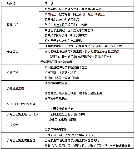 二級建造師考試輔導資料:公路工程重要考點清單