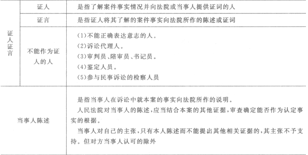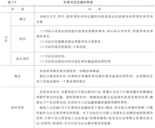 1.民事訴訟證據(jù)的種類(表3-5)