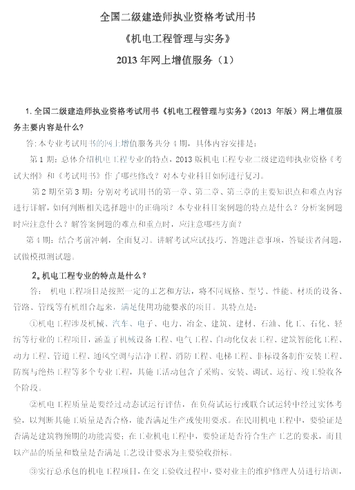 摘要 2013年二級建造師機電實務正版教材增值服務(一)