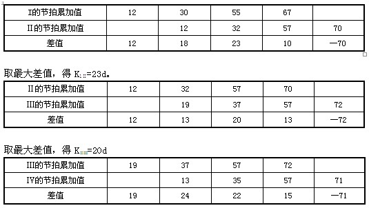 (2)總工期T=∑K+TN=23+20+24+71=138(天)滿足合同工期的要求。