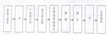 某施工單位承接了一段長30km的瀝青混凝土路面施工,其中基層采用廠拌二灰穩(wěn)定碎石,施工前選擇了相應(yīng)的施工機械并經(jīng)計算確定了機械臺數(shù),施工工藝如圖1所示。