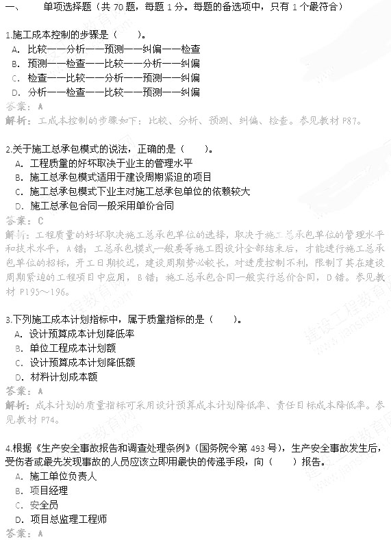 2013年二建《施工管理》真題答案(推薦版)