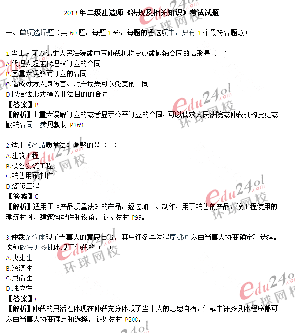 2013年二建真題專題丨2013年二級建造師真題(網友版)匯總