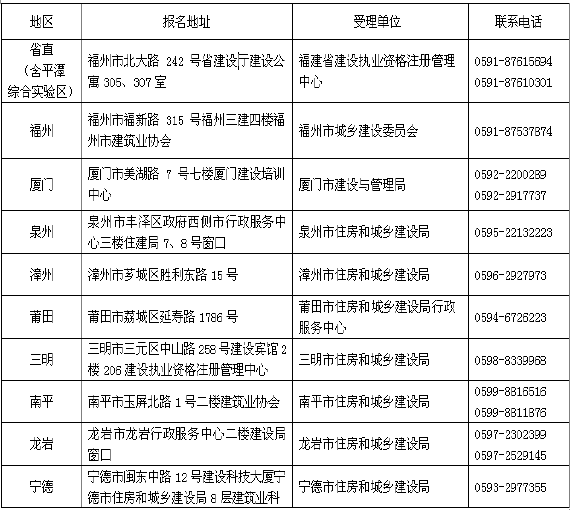 摘要 福建二級建造師執業資格考試各報名點聯系表