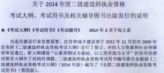 2014年二級建造師考試教材2月下旬出版