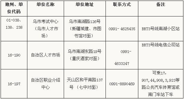 烏市無主管單位個人報名點地址及聯系方式