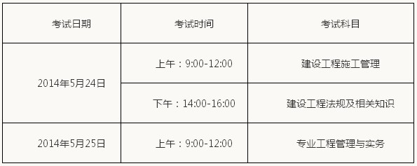 2014年度二級建造師執業資格考試定于5月24日、5月25日舉行。具體考試時間安排如下:
