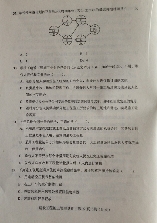 2014二級建造師施工管理真題(32-43)