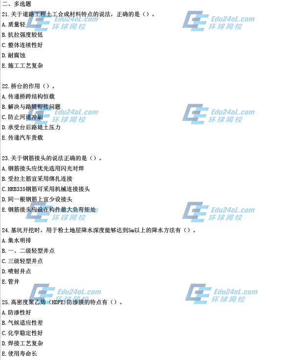 2014二級建造師市政實務真題(21-25)