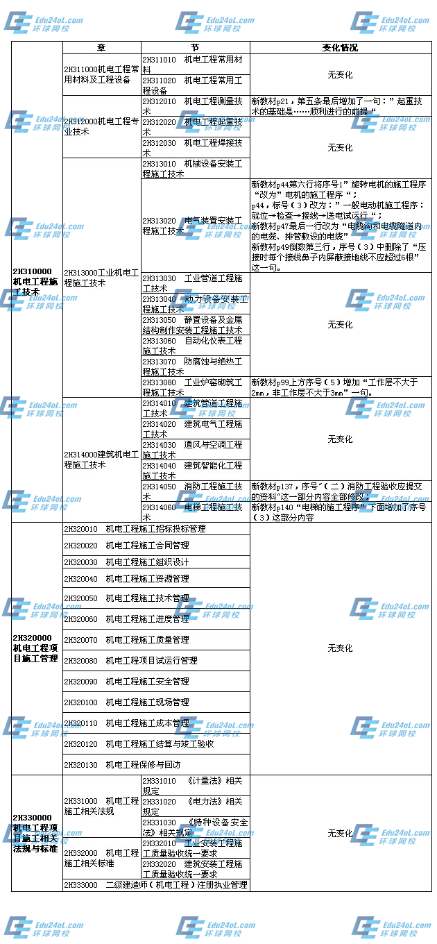 2015年二級(jí)建造師新版教材已經(jīng)發(fā)布,環(huán)球網(wǎng)校二級(jí)建造師頻道集結(jié)權(quán)威老師作出以下2015年二級(jí)建造師《機(jī)電工程管理與實(shí)務(wù)》新舊教材對(duì)比: