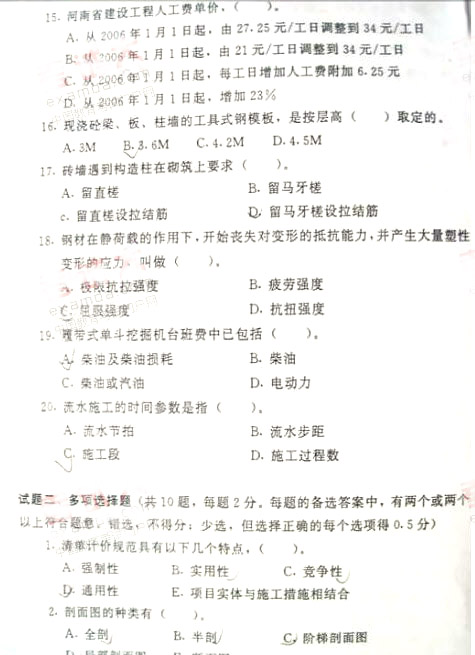 2006年河南造價(jià)員建筑裝飾工程試卷(4)