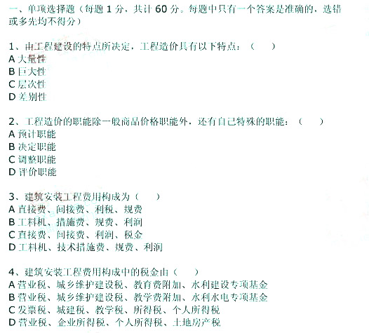 2010年全國造價員基礎知識考前沖刺試卷一(1)